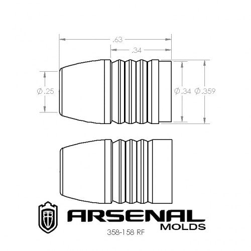 Ranch Dog styled bullet in the classic 158 grain weight with a shorter front driving band to aide in good chambering in all revolvers and short throated carbines in 357 Mag brass. The gas check shank has been spec'd for the gator check which is a little tighter fit than the Hornady check so either will fit just fine. The shank is a straight design to aid in ease of check install.