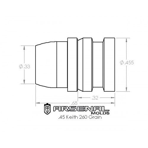 .45 cal Keith Type Bullet – 454424 SWC 260 Grain